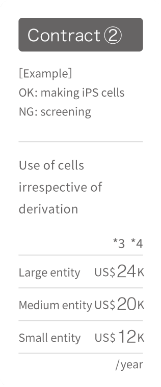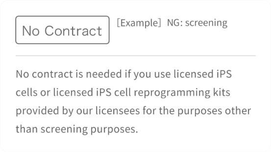 If you are considering conducting basic research, preclinical or non-clinical studies related to iPS or differentiated cells using patents in our portfolio, please see here.